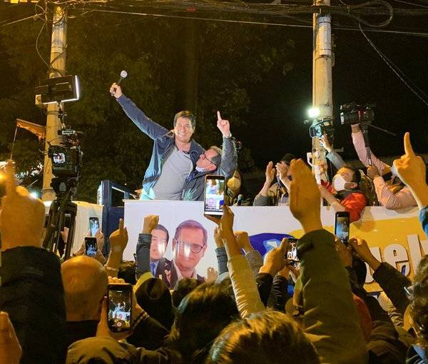 La noche de este domingo Andrés Arauz y su compañero de fórmula Carlos Rabascal se reunieron con sus simpatizantes.