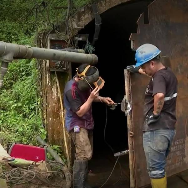 Es el momento cuando rescataban a decenas de trabajadores de la mina que fue atacada en el cantón Ponce Enríquez, provincia de Azuay.