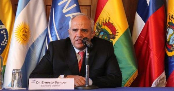 Samper aseguró en la ceremonia de suscripción que el acuerdo busca plasmar dos propósitos de la Secretaría de la Unión de Naciones Suramericanas (Unasur), referidos al trabajo de los consejos sectoriales del organismo y el de fortalecer al subcontinente como un "oasis de paz".