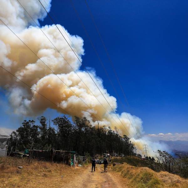 Fotografía referencial de un incendio forestal en el Cerro Auki, en Quito (Ecuador). ( )