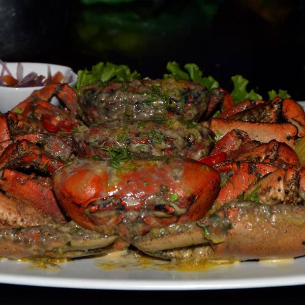 Imagen de archivo de un plato de cangrejo servido con un maduro y salsa, en el Festival de Cangrejo de Naranjal en 2023.( )
