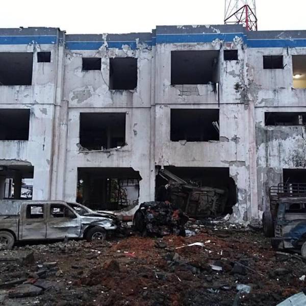 Mientras que, en la parte exterior del Comando de Policía existe destrucción de varias casas, ventanales e infraestructura a una distancia aproximada de 50 metros a la redonda.