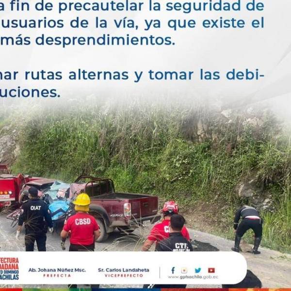 La entidad también emitió sus condolencias a los familiares de las personas que fallecieron. De su parte, el Ministerio de Transporte y Obras Públicas indicó a los conductores que tomen rutas alternas: