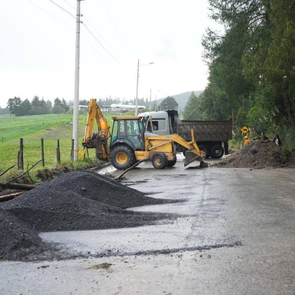 Personal obrero y maquinaria empezaron sus labores preliminares con la limpieza de cunetas y la organización del cronograma de trabajos. Se realizará el saneamiento de área, retiro de material saturado por el agua, recuperación de la alcantarilla y relleno. Adicionalmente, se gestionará con los entes competentes la situación de los reservorios para evitar futuros incidentes que pongan en riesgos a la carretera.