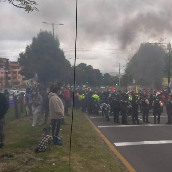 Los manifestantes trataron de subir por la calle Bolívar, pero los efectivos de la Unidad de Mantenimiento del Orden les impidieron hacerlo. "Inician primeros enfrentamientos entre manifestantes y policías en los alrededores de la Plaza de Santo Domingo", informó la Fundación Regional de Asesoría en Derechos Humanos (Inredh).