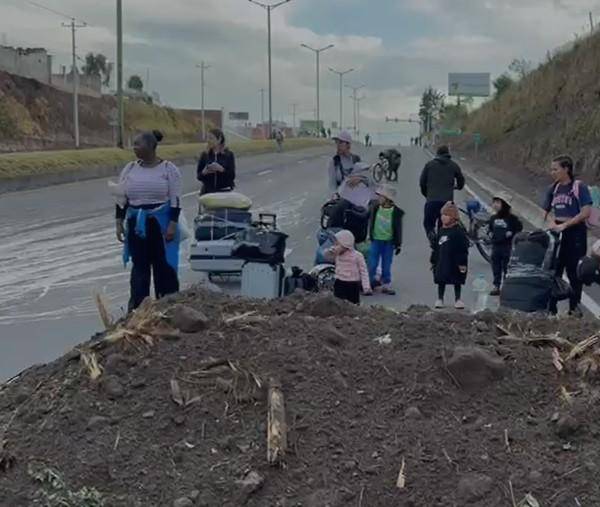 La Conaie confirmó que en este punto "continúa la movilización de comunidades y organizaciones en la Panamericana Norte". Decenas de ciudadanos se apostaron en la calzada e impiden el tránsito peatonal y vehicular.
