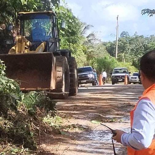 Maquinaria del MTOP limpia la carretera Coca - La Belleza. ( )