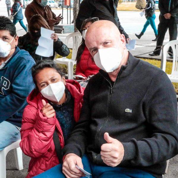 Antes de las ocho llegó a este punto el vicepresidente de la República, Alfredo Borrero, a recibir la segunda dosis de la vacuna. Se colocó en la fila hasta que le toque su turno.