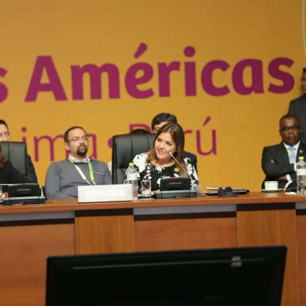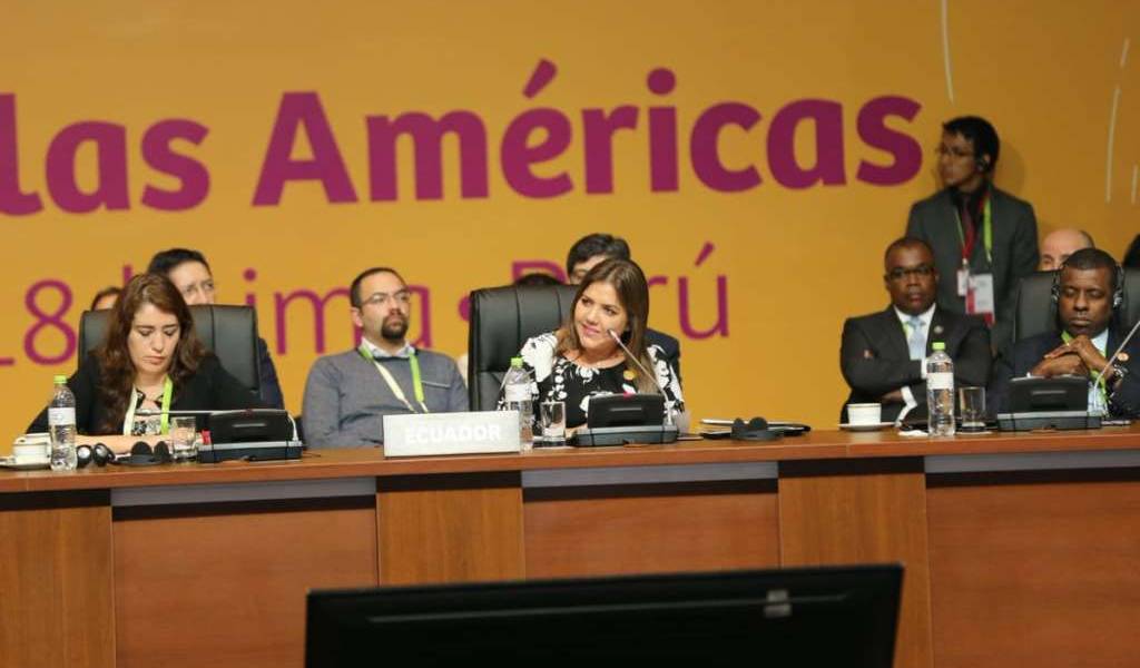 Por delegación del presidente de la República, Lenín Moreno, la vicepresidenta María Alejandra Vicuña está en Lima, Perú, este sábado 14 de abril de 2018 para participar en la VIII Cumbre de las Américas.
