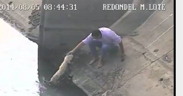 (VIDEO) Hombre rescata a un perro de una zanja en Guayaquil
