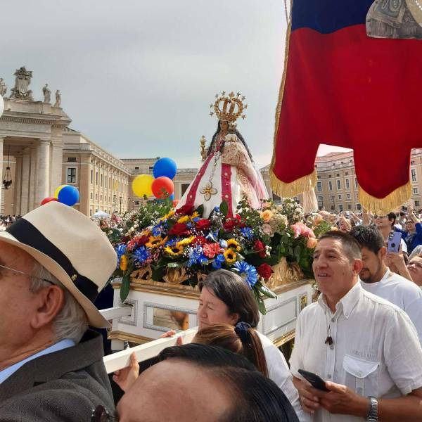 La imagen peregrina de La Churonita, como se conoce a la Virgen del Cisne, llegó hasta la Basílica de San Pedro, en Roma, el 22 de septiembre. Fue recibida por cientos de devotos que conforman la comunidad ecuatoriana y que la acompañaron con flores, rezos y cantos por la Plaza de San Pedro.