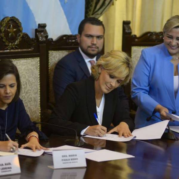 La alcaldesa de Guayaquil, Cynthia Viteri, y la ministra de Gobierno, María Paula Romo, firmaron un convenio en materia de seguridad la mañana de este jueves 15 de agosto. "La suscripción del acuerdo se da como parte del trabajo coordinado entre el Gobierno y los GAD", aseguro la representante del Ejecutivo.
