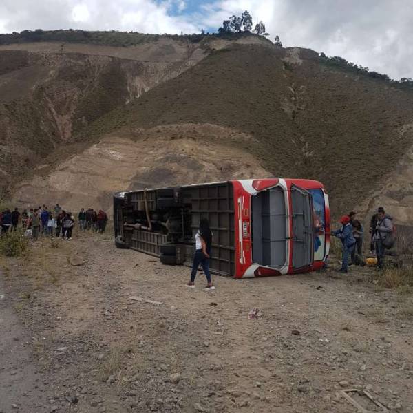 Al menos 4 personas fallecieron y otras decena habrían resultado heridas luego de que un bus se volcara en el sector de Cúnquer, provincia de Carchi.