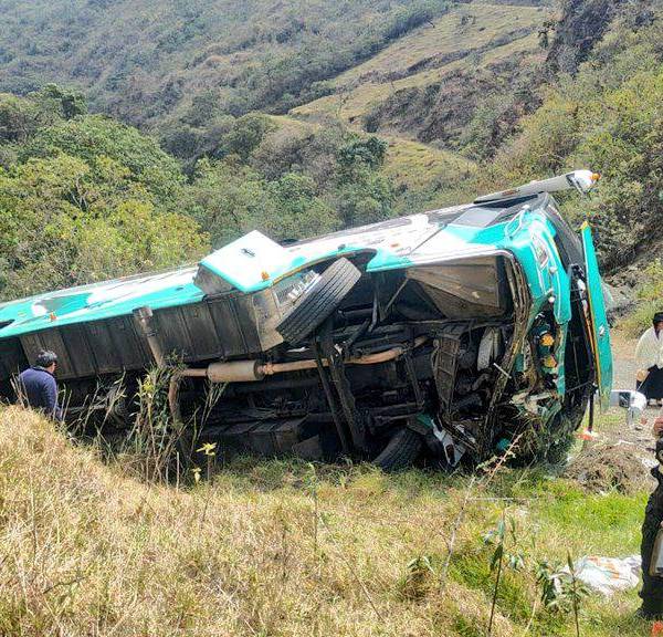 Al lugar arribaron ambulancias, personal de auxilio y uniformados de la Policía Nacional. Según los oficiales, el bus perdió pista al momento de descender por la pendiente de la carretera.