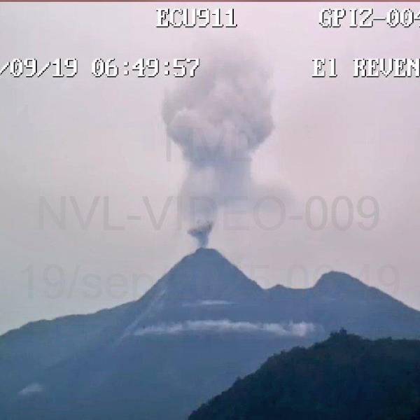 Cámaras de monitoreo del ECU 911 e Instituto Geofísico captaron la expulsión de material incandescente y ceniza, lo que confirma la actividad constante del coloso en la mañana del 19 de septiembre de 2025.