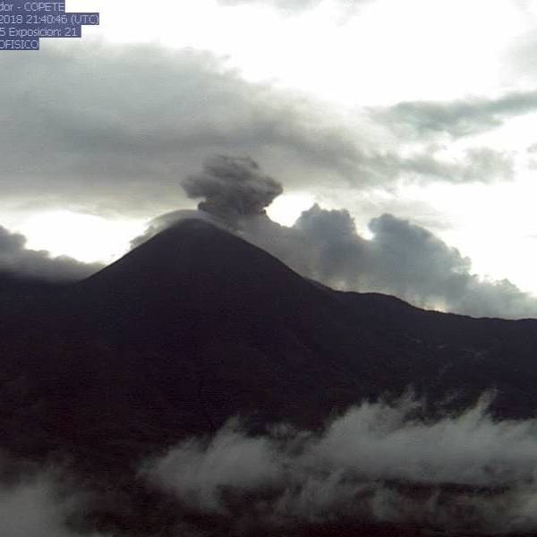 El volcán Reventador está en un proceso de erupción permanente desde el 2002, con periodos más efusivos que otros, los cuales han generado columnas de humo que han alcanzado, incluso, los 2 km de altura.