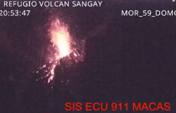 Una cámara del ECU 911 captó la noche de este jueves 27 de febrero la emisión de material piroclástico del volcán Sangay, en la provincia de Morona Santiago. El Instituto Geofísico (IG) de la Escuela Politécnica Nacional y la Secretaría Nacional de Gestión de Riesgos (SNGR) monitorean constantemente el coloso, cuyo periodo eruptivo inició en mayo de 2019.