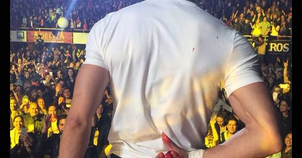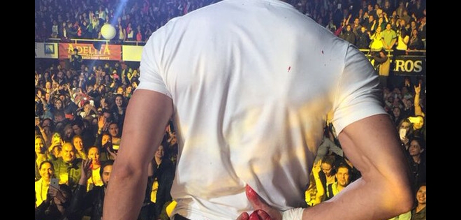 A pesar de su aparatosa herida, Enrique continuó actuando durante 30 minutos antes de bajarse del escenario. Foto: Web.