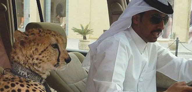 Las fieras los acompañan también en sus paseos en yate por las costas del golfo Pérsico.