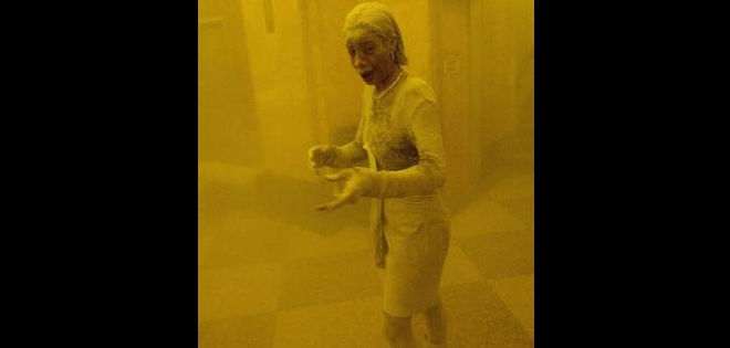 Fue fotografiada cuando logró refugiarse en un edificio cercano a las torres con su rostro y todo su cuerpo cubierto por el polvo que envolvió la Zona Cero después de que los edificios se vinieron abajo.