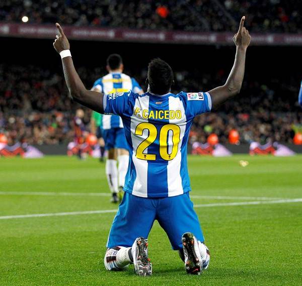 El delantero ecuatoriano, Felipe Caicedo, le marcó al Barcelona en el partido que disputa con su equipo, el Espanyol en la Copa del Rey.