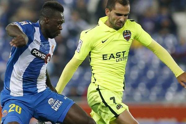 Felipe Caicedo anotó el gol de la victoria para el que Espanyol, que estrenaba en el banquillo a Constantin Galca, clasifique a octavos de final de la Copa del Rey a costa del Levante.