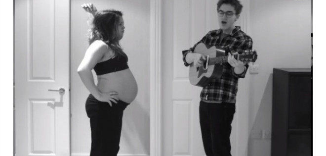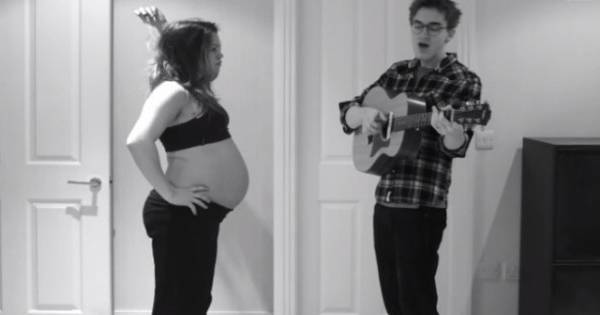 Además de ver a la esposa de Fletcher pasar por nueve meses de gestación, el cantante de McFly compuso una canción para la ocasión, que interpreta durante el video mientras toca la guitarra.