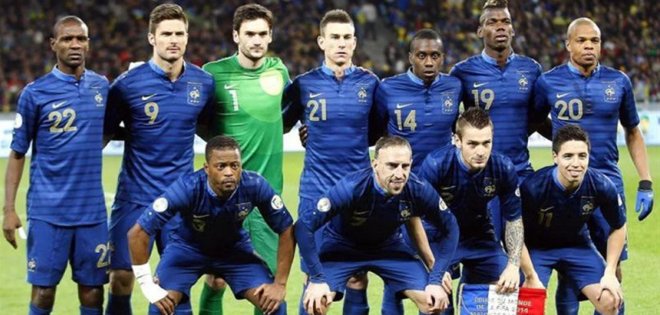 Defensores: Raphaël Varane (Real Madrid/ESP), Mamadou Sakho (Liverpool/ENG), Mathieu Debuchy (Newcastle United/ENG), Laurent Koscielny (Arsenal/ENG), Lucas Digne (París Saint-Germain/FRA), Eliaquim Mangala (FC Porto/POR), Bacary Sagna (Arsenal/ENG) y Patrice Evra (Machester United/ENG).