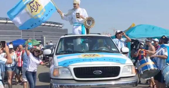 Hasta “Francisco” ha llegado al MetLife Stadium. Un hincha disfrazado del sumo Pontífice llegó hasta las inmediaciones del escenario deportivo y prendió la fiesta.