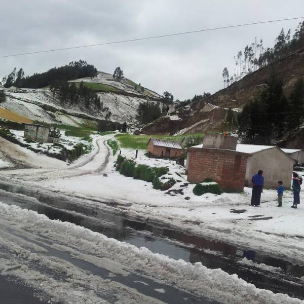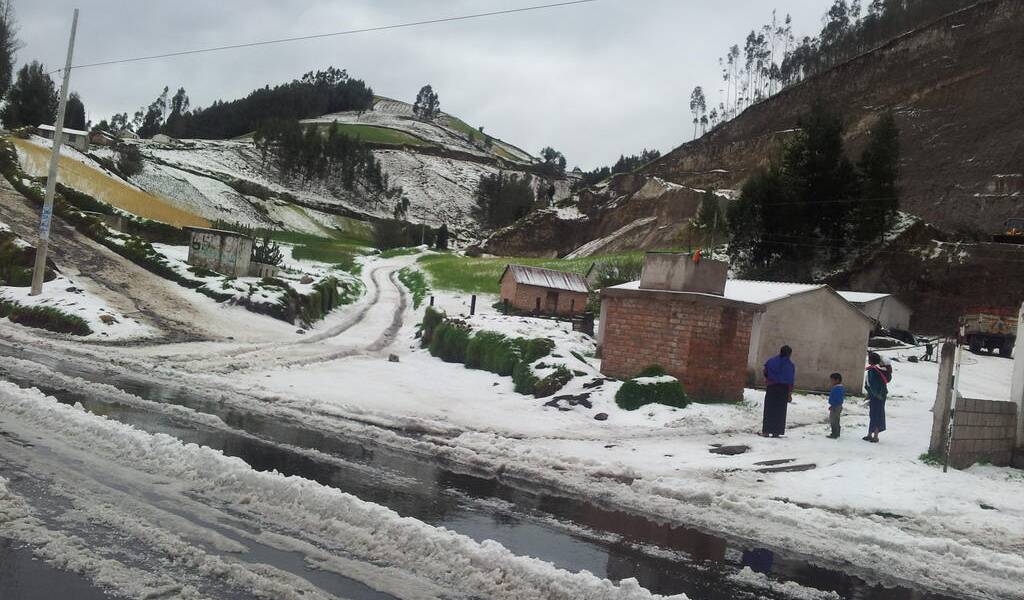 Una fuerte granizada cayó ayer en la parroquia Columbe, del cantón Colta, provincia de Chimborazo. doce comunidades de este cantón se ven afectadas por gruesa capa -de hasta 10 centímetros- que se formó con la precipitación.