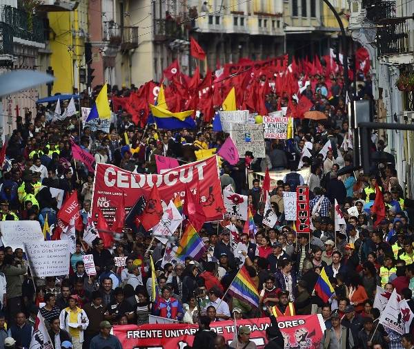 Sindicatos, estudiantes, profesores e indígenas se movilizaron en Quito y otras ciudades para protestar contra el gobierno, y rechazar el fallo que dejó en manos de Asamblea Nacional la aprobación de una enmienda constitucional para incorporar la reelección sin límites de los cargos de voto popular.