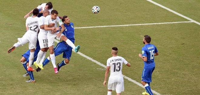 Uruguay, a la que sólo le servía la victoria para alcanzar los octavos del Mundial de Brasil, logró la clasificación al ganar 1-0 a Italia, que queda eliminada en la primera fase por segunda vez consecutiva después de lograr el título en Alemania-2006, este martes en Natal.