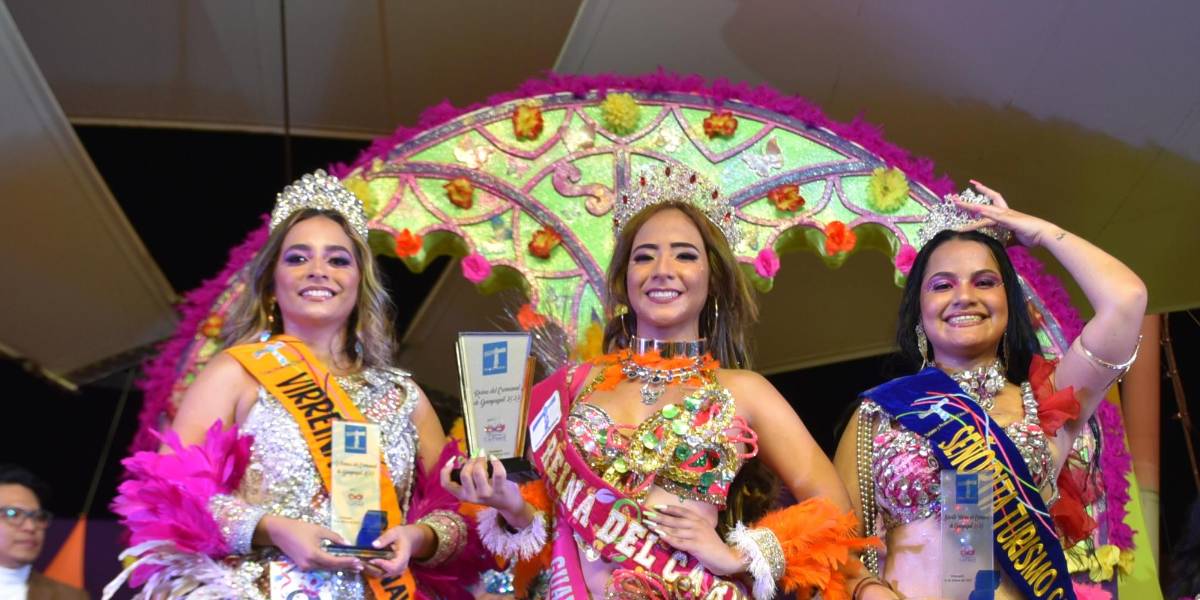Además, Ivette Riqueros fue seleccionada como Virreina electa y Darlyen Agráces como la Señorita Turismo. Las tres ganadoras, así como las candidatas del certamen se presentarán en los carros alegóricos del VIII desfile “Guayaquil es mi destino en Carnaval” que se realizará este sábado 18 de febrero.