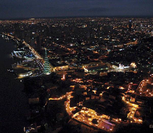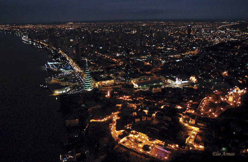 La noche en Guayaquil tiene un matiz que solo puede apreciarse desde lo mas alto. En la oscuridad, la ciudad brilla mas que de costumbre parecería que vive una eterna fiesta.