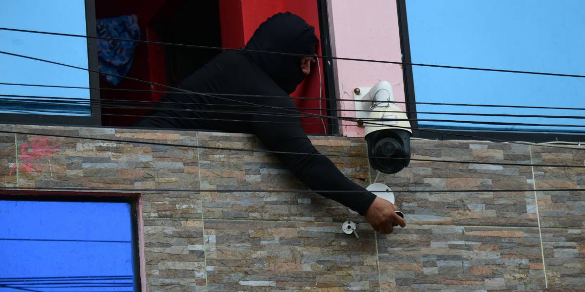 Imagen de un funcionario retirando un circuito de cámaras en una vivienda del Guasmo Sur de Guayaquil, presuntamente perteneciente a un grupo terrorista.( )