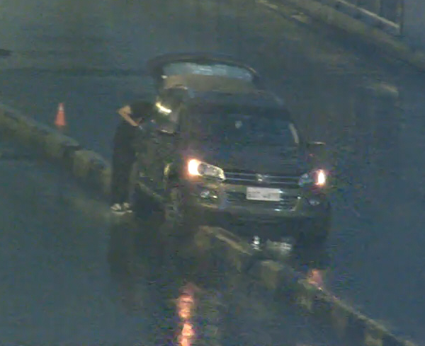 Imagen de un vehículo accidentado tras intentar subir un paso a desnivel en La Atarazana, norte de Guayaquil.( )