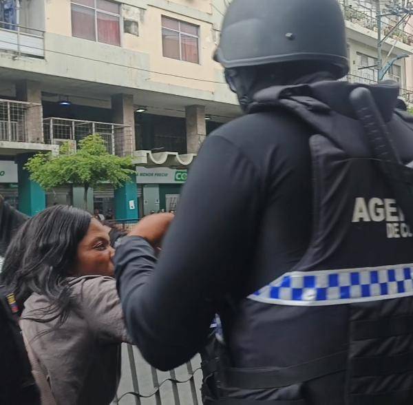 Un operativo en el sector de la Bahía, en el centro de Guayaquil, terminó este martes 5 de agosto con la agresión a cinco agentes municipales y la detención de dos mujeres. El hecho ocurrió mientras los funcionarios retiraban a comerciantes informales del espacio público.