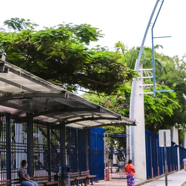 Imagen de un paradero de bus en Guayaquil, frente al Malecón 2000.( )