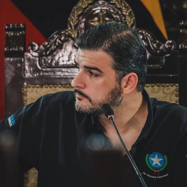 Imagen de Aquiles Álvarez, alcalde de Guayaquil, en una sesión de concejo municipal de marzo de 2025.( )