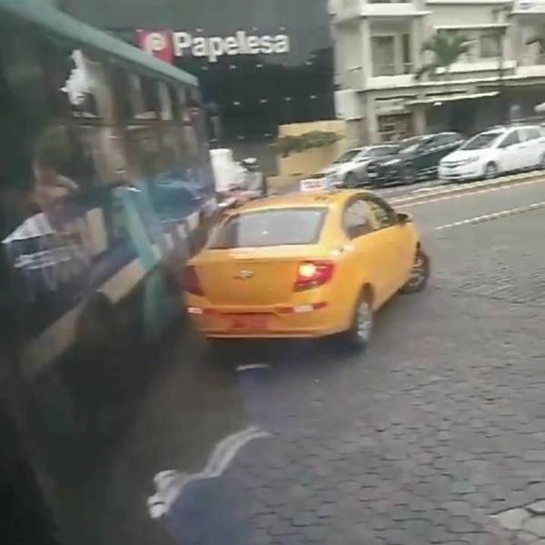 Instantes en el que un bus de la Metrovía persigue a un taxista en el centro y norte de Guayaquil.( )