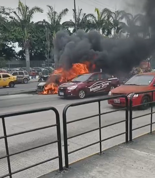 En el sur de Guayaquil, sobre la Avenida 25 de Julio cerca del hospital del (Instituto Ecuatoriano de Seguridad Social (IESS), un auto se incendió en plena vía, generando alarma entre los conductores que transitaban por la zona.