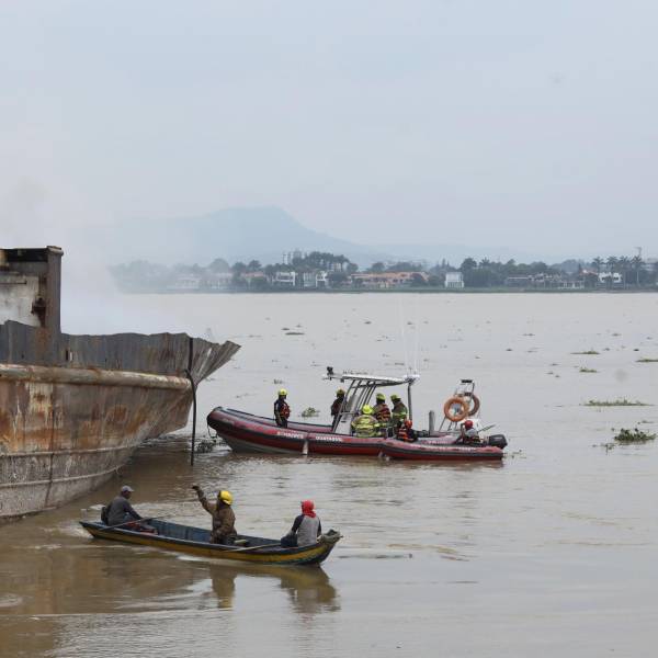 Imagen de una barcaza incendiada en Durán, la mañana de este miércoles 20 de marzo en 2024.( )