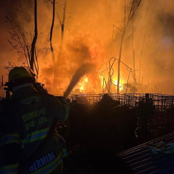 100 bomberos controlaron el incendio de una bodega con químicos en Vía a la Costa, Guayaquil