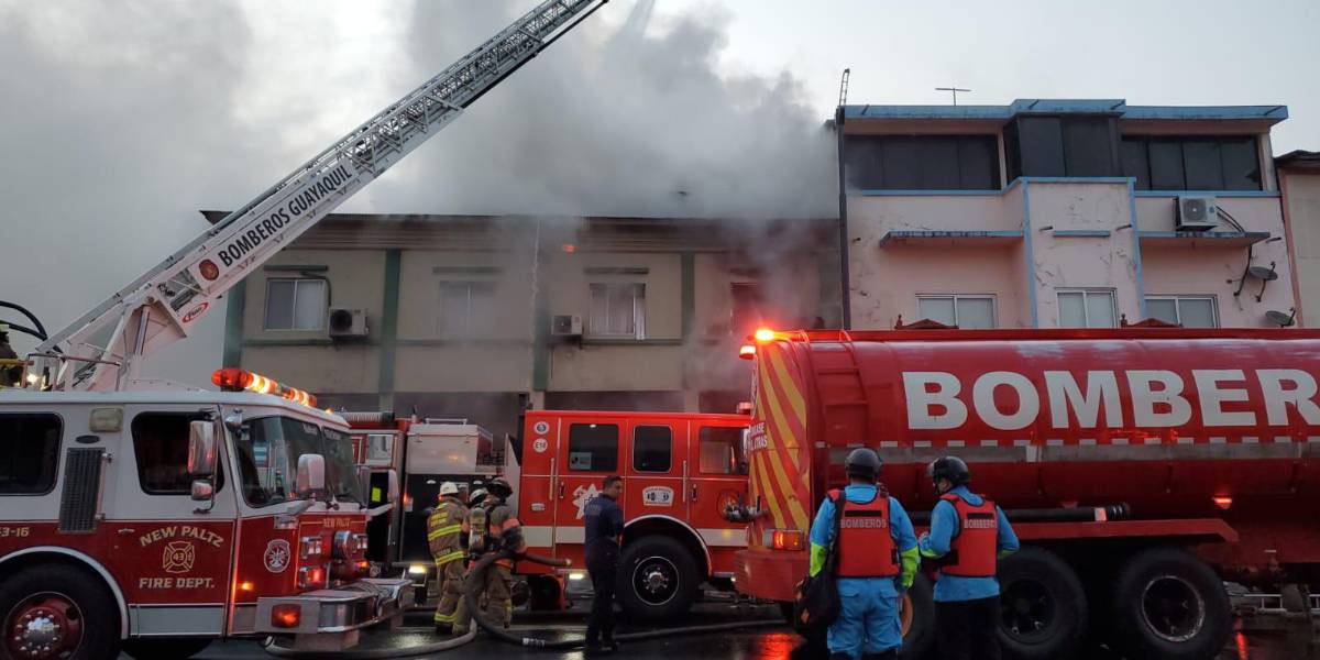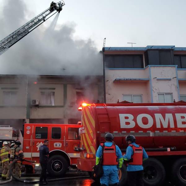 60 bomberos se movilizaron al centro de Guayaquil por un incendio estructural