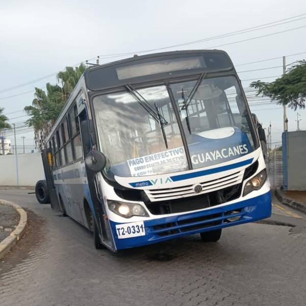A un bus de la Metrovía se le desprendió una llanta la mañana de este lunes 30 de octubre mientras llegaba con pasajeros a la Terminal Río Daule, en el norte de Guayaquil; en tanto que, en Salitre (Guayas), un bus se incendió en pleno casco urbano.