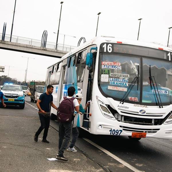 Imagen de un bus recorriendo la avenida Perimetral de Guayaquil.( )