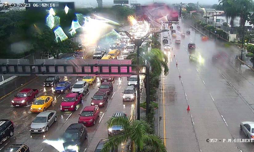 La intensa lluvia en Guayaquil dejó bajo el agua algunos sectores de la ciudad, entre ellos la ciudadela Atarazana, en el norte, lo que causa mucha dificultad en el tráfico.
