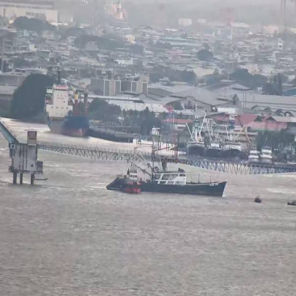 El ECU 911 recibió la alerta alrededor de las 16:40. El organismo informó que personal naval realiza maniobras para remolcar el navío, que quedó atrapado junto a la estructura.