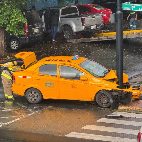 El siniestro de tránsito ocurrió en las calles Chile y Vacas Galindo, centro sur de Guayaquil. Según un testigo, el taxi tuvo que impactarse contra un poste para no chocar contra un auto.
