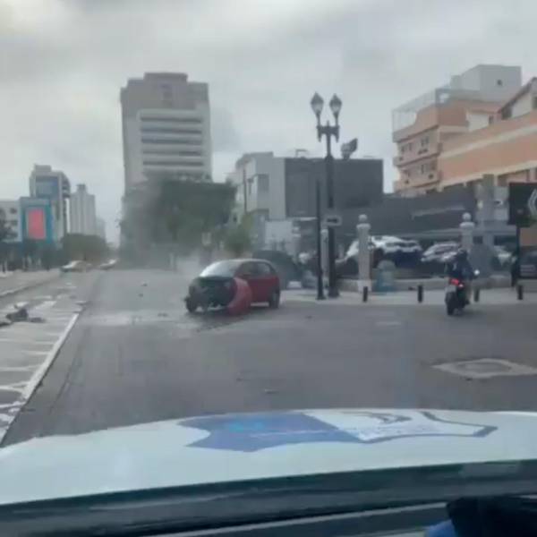 En videos compartidos en redes sociales se observa a ambos vehículos sobre la 9 de Octubre tras el choque; la camioneta se impactó contra el cerramiento de una concesionaria de autos, mientras que el Spark se quedó en medio de la vía.